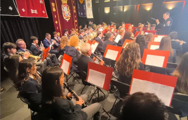 Posteriormente, Javier Pavía, presidente de la Junta de Cofradías, destacó la «grandeza de las marchas que han resonado hoy en este auditorio, dado que nos transportan a esas calles inundadas de color y flor. A momentos especiales que todos los procesionistas compartimos y podemos ver nada más cerrar los ojos. Que estas marchas nos lleven a las diferentes escenas de la Pasión que desfilan en nuestra Semana Grande».