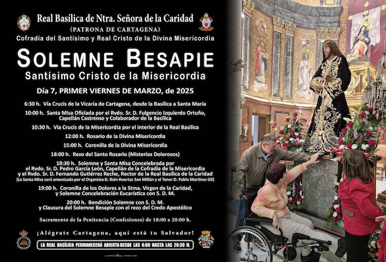 La iglesia de Santa María estará abierta más de quince horas para acoger las miles de personas que acudirán a venerar a la imagen marraja de la asociación piadosa, mientras que el 'Cristo del Lago' regresa a la basílica de la Caridad para recibir a sus devotos. La iglesia de Los Dolores también estará todo el día sin cerrar para venerar a la imagen en el final del triduo y en la parroquia urbana de Santo Domingo será el tercer año en el que Jesús del Rescate reciba a sus fieles.