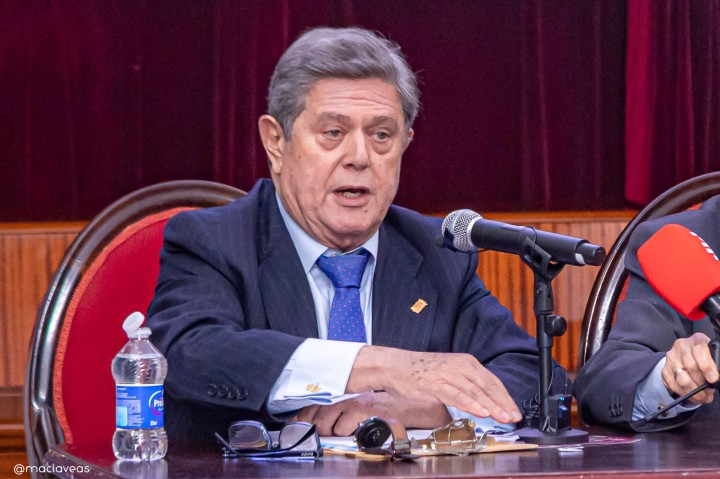 El portapasos de 'la Caridad Chica' y exministró ofreció una amena conferencia en el salón de actos de La Económica en una nueva jornada del programa de la Asociación Procesionista del Año.