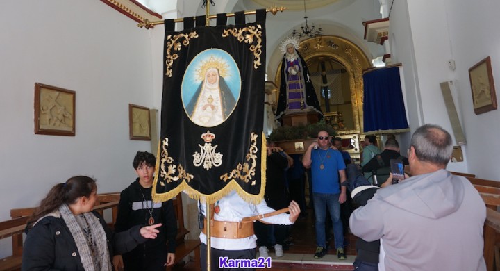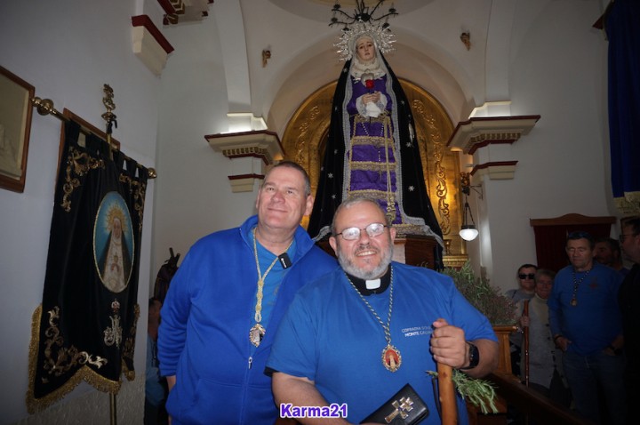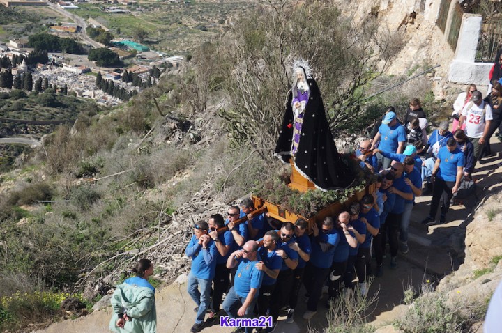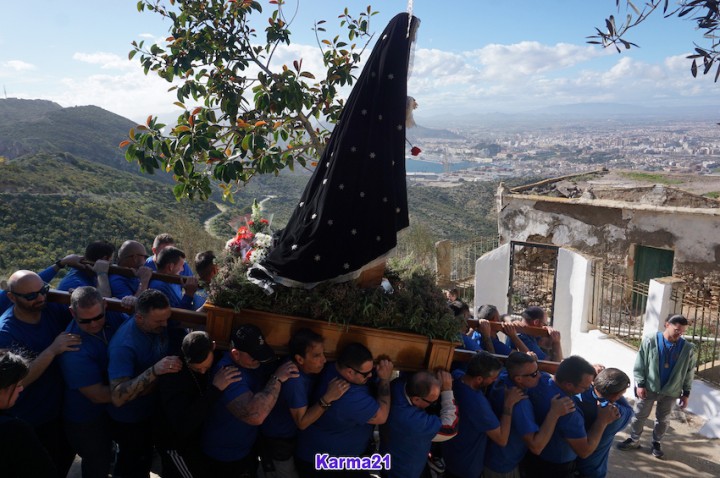La Soledad del Calvario llegará al cruce, donde se le incorporan los tambores de la banda de la banda mixta de 'La buena unión de Los Mateos', marchando hacia Lo Campano. En este lugar se desvió para dirigirse a la fachada de la iglesia de San Pedro Pescador, donde esperaba la imagen del apóstol, y donde varios niños dedicaron textos y rezos.