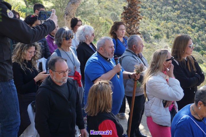 Mientras, de forma paralela, en la puerta se informa a los que quieran acompañarla que deberán ir siempre detrás del trono, en el que lucen el tomillo y el romero que en la misma mañana han recogido los hermanos de la cofradía. En concreto, cinco sacos. Reseñar que entre los que visitan a la Virgen antes de salir figura la madrina de este año, Emilia Gallego Soto.