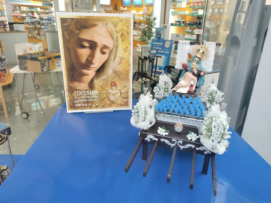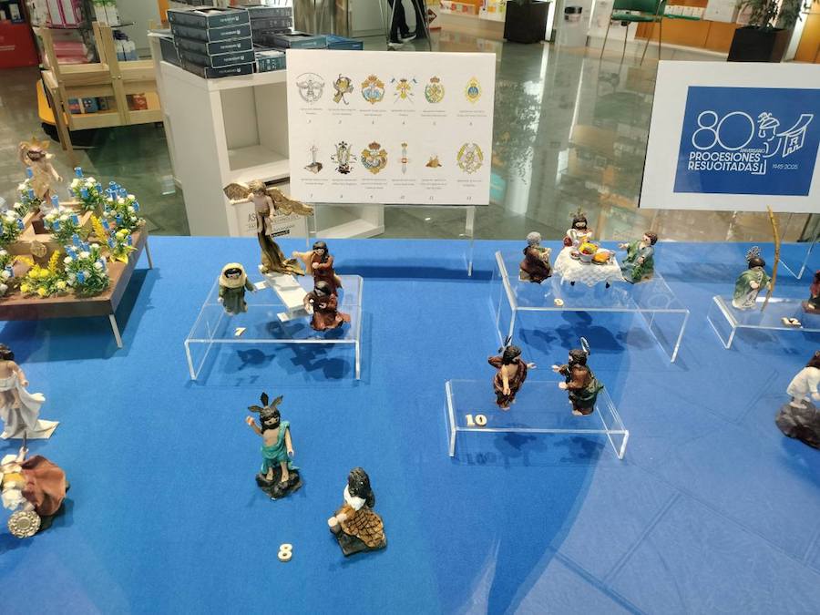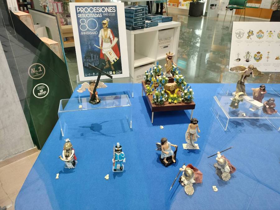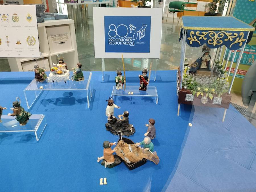 La iniciativa que lleva el procesionista Antonio Ferrer desde hace unos años con figuras originales de Playmóbil ofrece en esta ocasión las imágenes del cortejo del Domingo de Resurrección, además de dos tronos, con motivo del aniversario del inicio de la hermandad. Se pueden ver a través del escaparate de la farmacia de la calle del Aire de Cartagena.