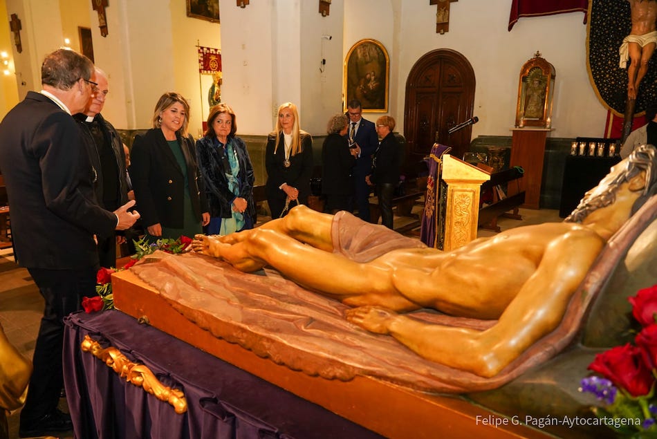 García Mascarell ha puesto en valor también la talla del Cristo Yacente de José Capuz, “como un referente en la imaginería y que a su paso, la noche del Viernes Santo, inflama los corazones de amor hacia El Señor”.