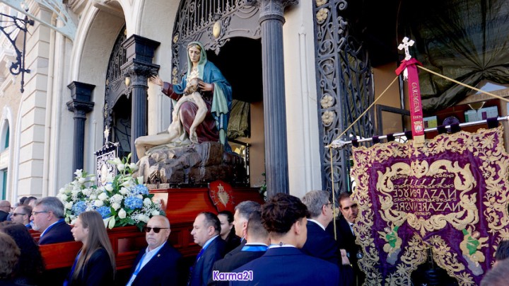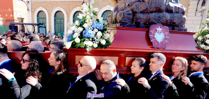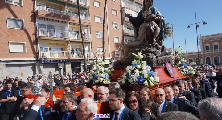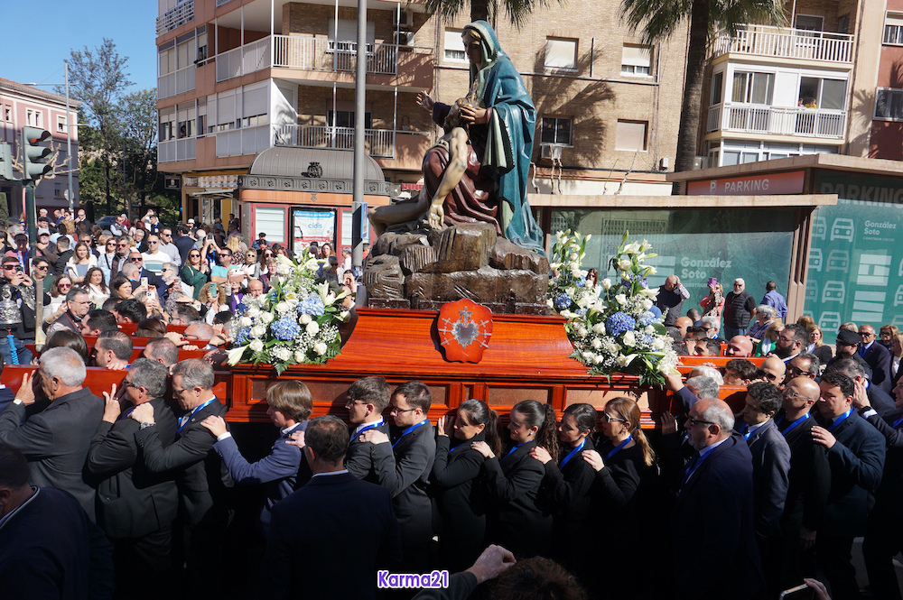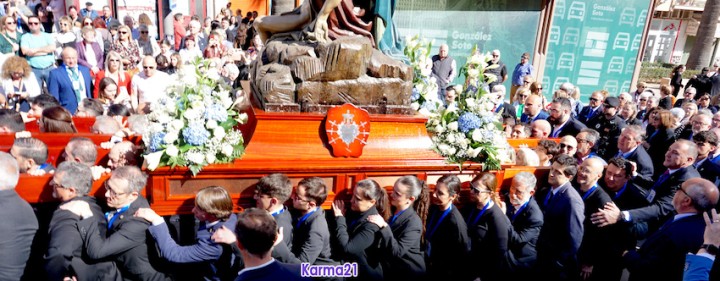 Este año han sido el capellán marrajo, Fernando Gutiérrez Reche, y el edil Ignacio Jaúdenes, quienes han tenido esa representatividad, junto al hermano mayor del Nazareno, cofradía a la que pertenece la Virgen de la Piedad.