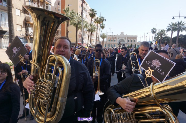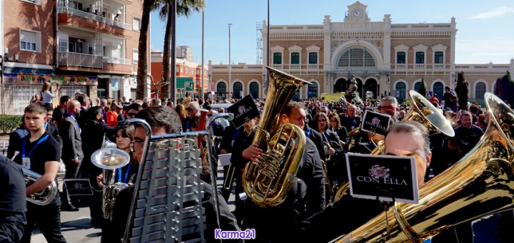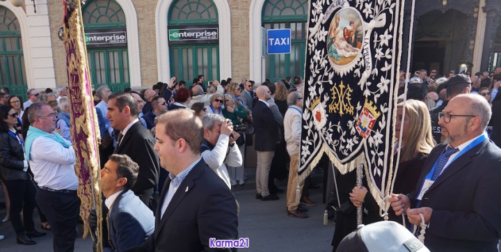 Desde la entrada de la estación ha salido la imagen con un centenar de promesas detrás, mientras que en cabeza iban los estandartes, el grupo de tamboristas y la banda de música, que ha comenzado interpretando 'Plegaria', para después pasar a 'Caridad Chica'.