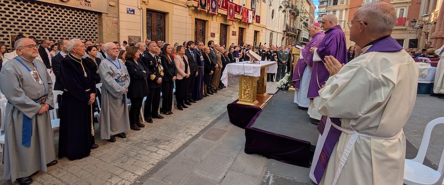 La entrega de la “Sexta Vara” tuvo lugar al finalizar una solemne misa extraordinaria, celebrada frente al trono de la Virgen de la Piedad, en el atrio de la Iglesia de Santa María. La eucaristía estuvo presidida por el Excmo. y Rvdmo. Sr. Obispo de Cartagena, D. José Manuel Lorca Planes, acompañado por el capellán marrajo, Rvdo. D. Fernando Gutiérrez Reche, junto al Vicario Episcopal de Cartagena, Ilmo. Sr. D. José Fernández Sánchez.
