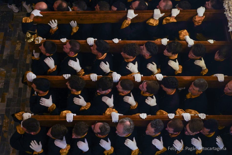 La corporación municipal del Ayuntamiento de Cartagena, liderada por la alcaldesa Noelia Arroyo, sigue al Santo Sepulcro de Jesucristo en la procesión del Viernes Santo. El cortejo fúnebre de la Cofradía Marraja partió desde la iglesia de Santa Maria de Gracia, manifestando por las calles del casco histórico de Cartagena el luto por la muerte de Jesús en la Cruz. La comitiva contó con el obispo de la Diócesis de Cartagena, José Manuel Lorca.