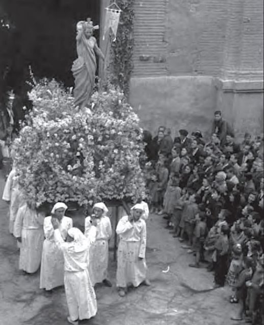 La cofradía que representa la resurrección de Jesucristo en la Semana Santa de Cartagena culmina su 80 aniversario con una procesión extraordinaria en la que se recupera gran parte de cómo fue su primera salida en 1945 y del entonces recorrido por el casco histórico. Su desarrollo afectará esta tarde al tráfico de vehículos en e casco antiguo, como las vías Serreta, Parque, Duque, Aire o Cañón. En la foto, escena retrospectiva de hace 80 años con el grupo de angelitos con alas