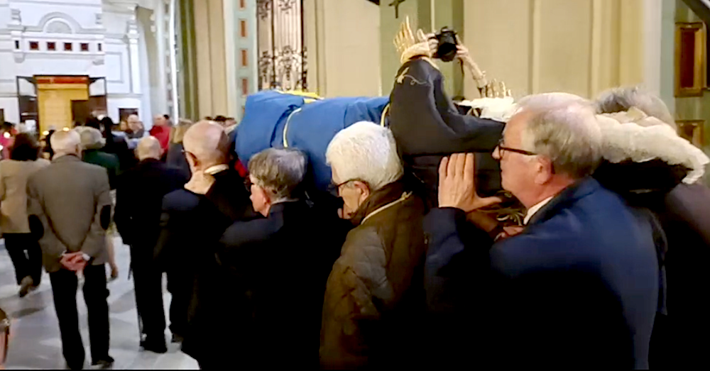 Decenas de californios acompañaron anoche, en un tradicional acto cargado de solemnidad, el traslado de la imagen por parte de los mayordomos hasta el altar mayor de la iglesia de Santa María, donde hoy (20.30 horas) tendrá lugar el principal acto religioso de cuaresma de la Cofradía del Prendimiento, por primera vez sin restricciones desde 2019.