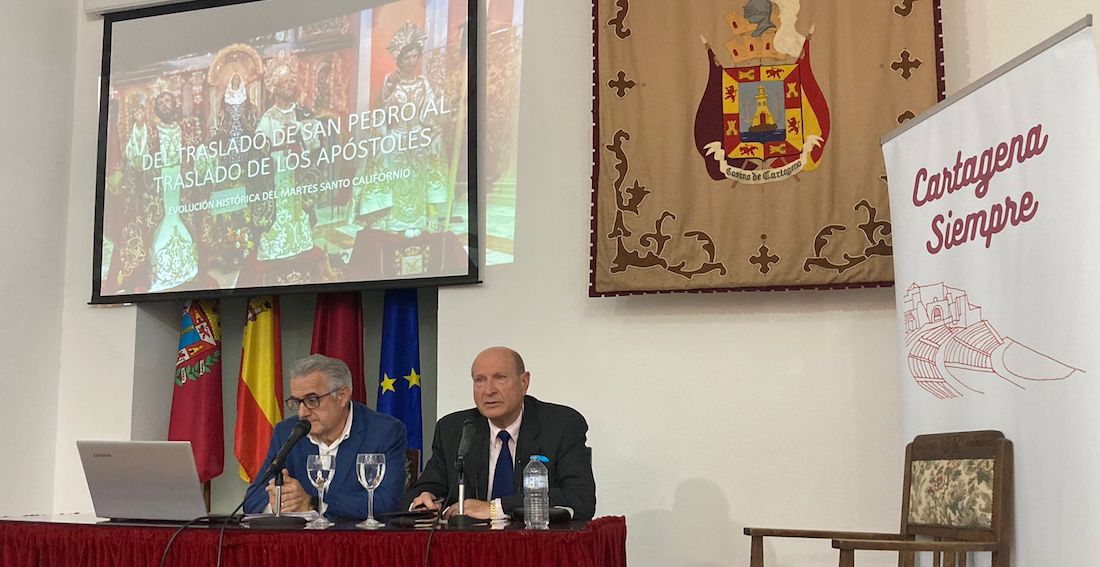 La segunda conferencia organizada por la asociación cultural atrajo a un buen número de procesionistas de diferentes cofradías (principalmente californios y sampedristas) al salón de actos del Casino de la calle Mayor, donde Rafael del Baño desveló datos muy interesantes ‘Del traslado de San Pedro al traslado de los apóstoles. Evolución historica del Martes Santo californio”, acto que fue presentado por Rafael Ruiz Manteca.
