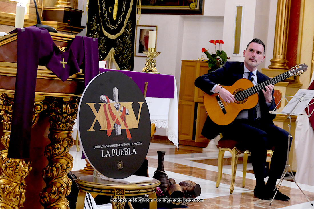 Carlos Piñana ofreció un muy ameno y singular pregón de la Semana Santa poblense, que este año culmina el trienio de su aniversario de plata con el 25 cumpleaños de la procesión del Domingo de Ramos, que motiva el cartel creado por Rubén Paredes con una foto de cuando se estrenó y otra de la pasada edición.