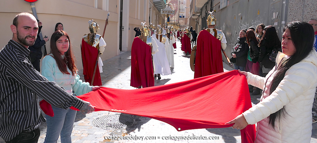 Los armados de la cofradía blanca abrieron el capítulo de cuaresma de los desfiles por la ciudad de Cartagena para anunciar la celebración de las procesiones, siendo novedad que ha recuperado una costumbre de hace varias décadas, en la que llevaban una bandera sobre la que los viandantes depositaban dinero para ayudar a cubrir los gastos de la agrupación. GALERÍA DE FOTOS (pinchar aquí)