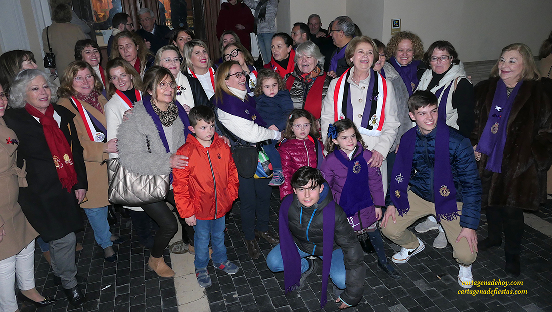 Ya se ha convertido en una tradición que, en la noche de 'La Llamada', tras el canto de la Salve a la Virgen de la Caridad, una representación de la Asociación de Mujeres Cofrades de Cartagena se haga una fotografía ante al Basílica Menor de la patrona. Anoche volvió a captarse esa imagen, esta vez, a diferencia del año anterior, sin mascarillas.