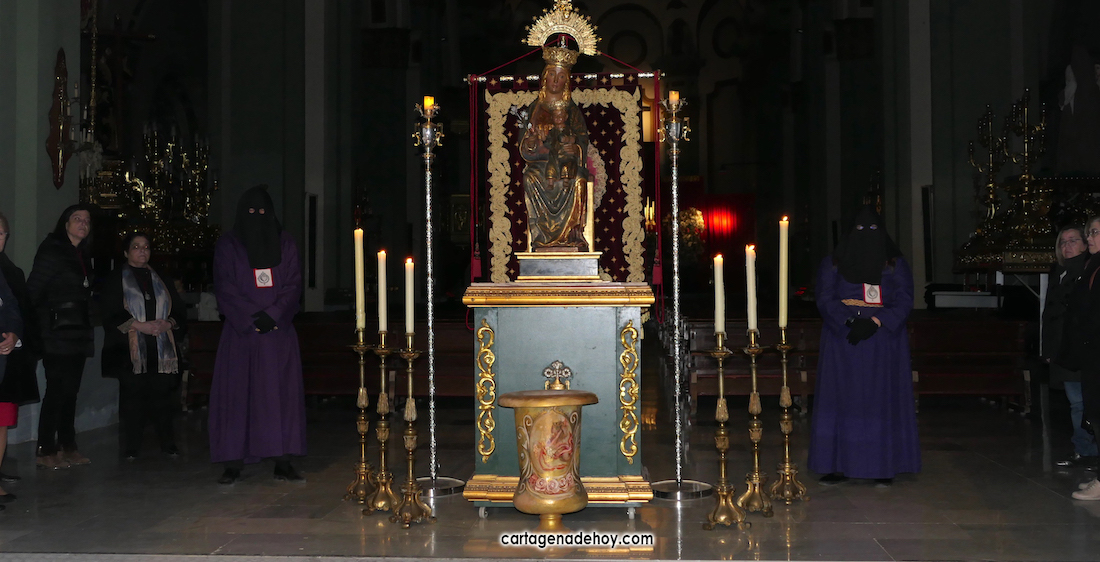 La Cofradía de la Virgen del Rosell y los Cuatro Santos de Cartagena recuerda a la ciudadanía que, en la madrugada del Viernes de Dolores, el Vía Crucis del 'Cristo Moreno' y la Soledad del Consuelo hará la tradicional estación en su recorrido ante la talla, con entrega floral y se cantará, por vez primera en Semana Santa, la Salve cartagenera.