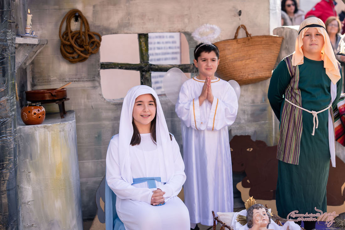 Jóvenes Marrajo organiza, desde dos años antes de la pandemia, el montaje de figuras con vida en torno al nacimiento del niño Jesús en la plaza del Ayuntamiento, coincidiendo con la llegada de los Reyes Magos a Cartagena, quienes ha llevado nuevamente oro, incienso y mirra al portal de Belén.