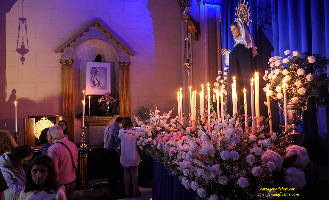 Con coreografía de Mari Carmen Baños, vestuairo de Lali Gómez Sannicolás y la participación de la capilla de música que dirige Ibán Huertas San Millán, se celebra esta noche (20.30 horas) en la parroquia de Santo Domingo, dentro de las dos jornadas de cultos a la Virgen de la Soledad que organiza su agrupación. El sábado, a las 20 horas, misa en el mismo templo, oficiada por Fernando Gutiérrez Rech.