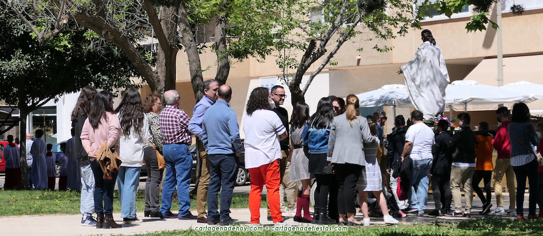 La imagen california del grupo del ‘Sermón de la montaña’, que salió en procesión el Domingo Ramos, ha regresado al lugar donde se le rinde culto desde 2005, siendo la décimo quinta edición de la procesión de returno a la parroquia de María Reina de los Corazones. GALERÍA DE FOTOS (pinchar aquí)