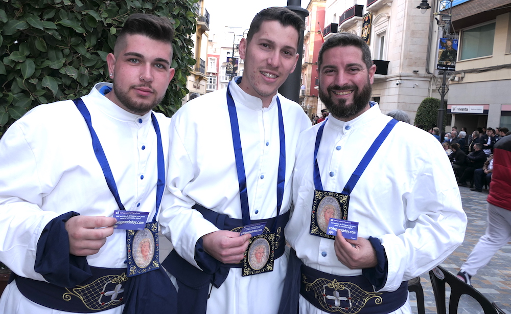 El hermano mayor, Juan Carlos de la Cerra, anuncia que durante esta Semana Santa se están grabando escenas de las cinco procesiones de la hermandad, con las que se elaborará un film que será presentado en octubre, coincidiendo con el concierto organizado por el 275 aniversario californio. En las imágenes adjuntas, escenas del ‘Cabildo de los dátiles’ celebrado hoy en el Casino de Cartagena, que ha culminado con el tradicional reparto de este dulce.