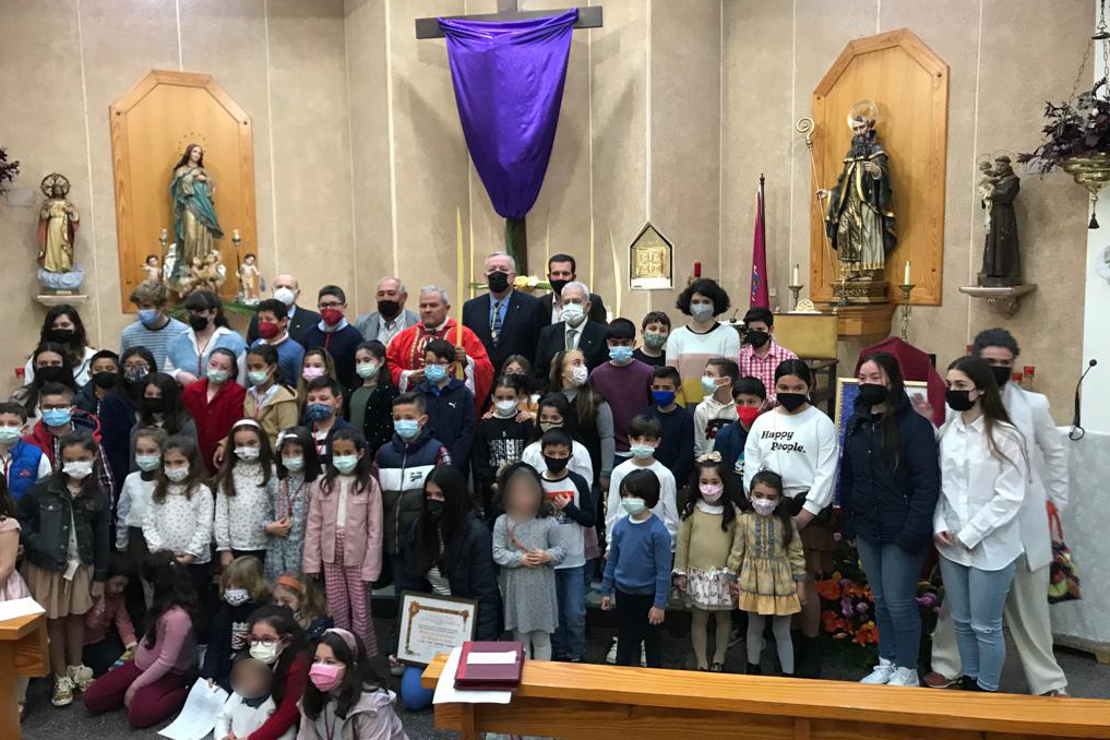 El Domingo de Ramos tuvo lugar la tradicional misa de bendición de palmas del tercio y trono de ‘Los milagros de Jesús’ de esta agrupación, que, por primera vez, se concelebró con los niños del tercio infantil del ‘Bautismo de Jesús’, del Prendimiento. A su terminación se celebró una chocolatada ofrecida por el grupo californio que representa al ‘beso de Judas’ a los asistentes, en cuyo transcurso fue nombrada Nerea Albaladejo Almagro como madrina infantil.