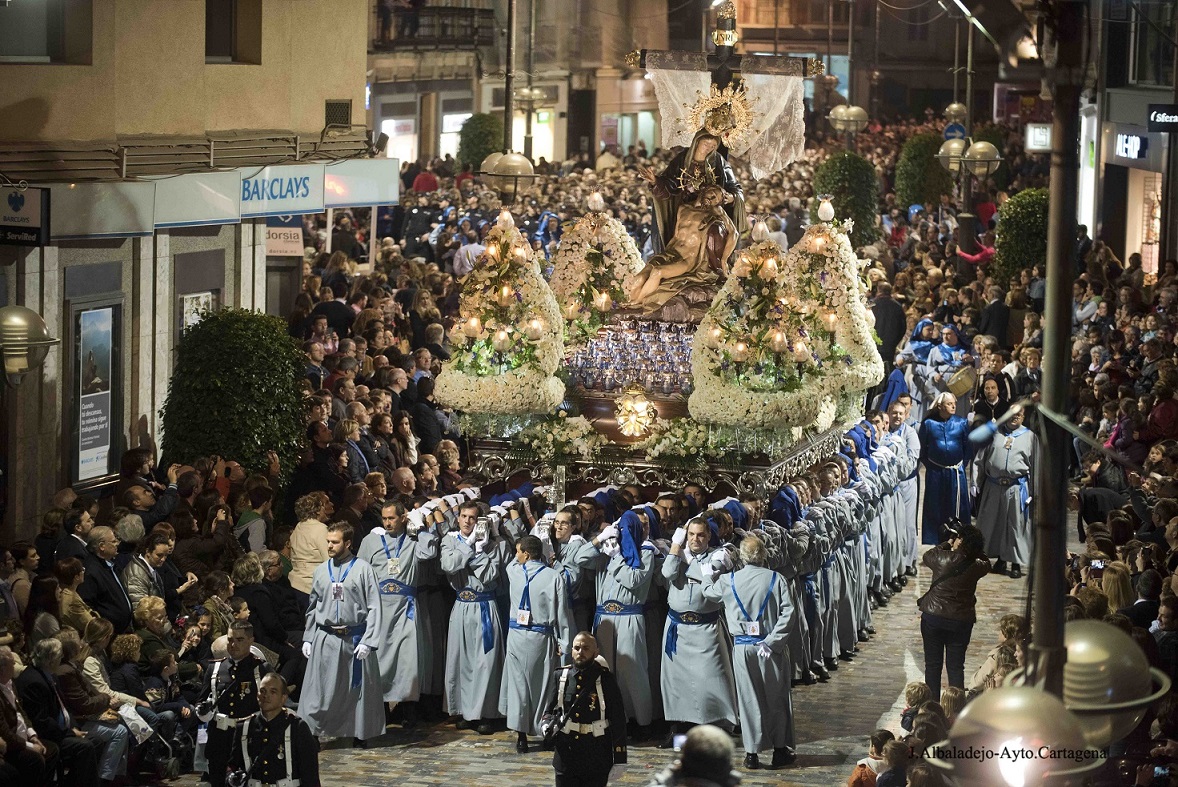 La actividad pasional este Lunes Santo en Cartagena estará marcada por la procesión de las Promesas de la Santísima Virgen de la Piedad, siendo esta la primera que organiza la Cofradía Marraja. El trono de la Stma. Virgen de la Piedad realizará su salida a las 21:50, llegando la Iglesia de la Caridad sobre las 23:55. La llegada de la Stma. Virgen de la Piedad a la Iglesia de Santa María de Gracia será aproximadamente a la 1 de la madrugada.