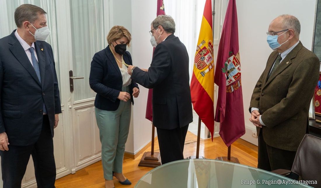 Ha sido obsequiado por Carlos Vilar, ayudante guardalmacén de la agrupación de la Virgen california, y le será colocado esta tarde, en la tradicional vestida de la imagen, que por seguridad sanitaria, tendrá lugar por primera vez en la capilla encarnada, para después efectuar el traslado al altar, donde este miércoles, a las 20.30 horas comenzará el principal acto de cuaresma de la hermandad, que será oficiado por el obispo, monseñor Lorca Planes, y contará con la asistencia, entre otros, de la alcaldesa de Cartagena, que ayer recibió la medalla de la cofradía.