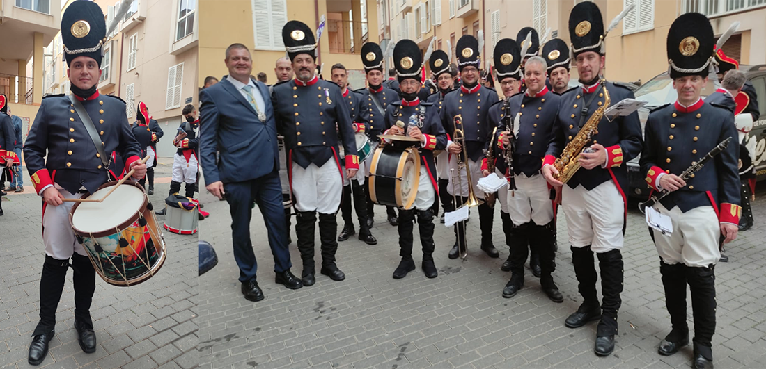 El colectivo musical, con sus integrantes ataviados con el tradicional vestuario granadero, ha protagonizado el capítulo musical del tradicional acto que la agrupación de Granaderos marrajos ha llevado a cabo en Héroes de Cavite, siendo novedad llamativa que el dibujo del héroe español de la batalla naval contra los ingleses de 1797 figuraba en el tambor de guerra, como se observa.