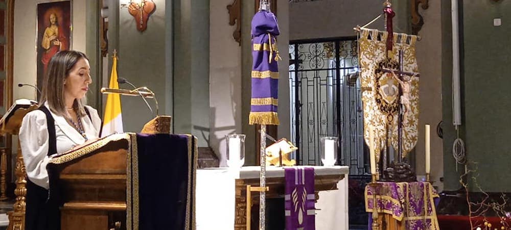 Rosa Pérez Galindo ofreció en la iglesia de Santa María una precioso oratoria en la séptimo edición del 'Pregón de la juventud de la Cofradía de Jesús Resucitado', en la que abogó, desde su experiencia y juventud, porque se deje a los jóvenes "volar y caer. Nuestro fin sólo es seguir vuestros pasos", expresó.