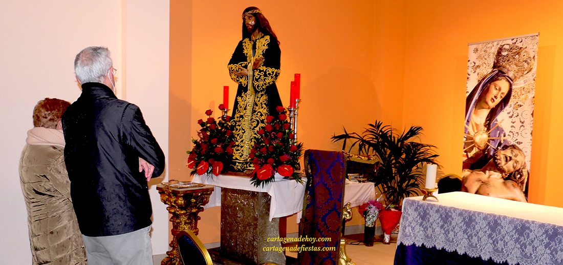 La Asociación Canónica del Cristo de la Divina Misercordia ha solicitado al Ayuntamiento de Cartagena variar el trayecto del vía crucis del Viernes de Dolores para evitar pasos complicados (como el de la calle San Vicente) y facilitar una más cómoda presencia de las personas que integran el cortejo, que cada año son más. La petición es adentrarse por Puerta de Murcia y calle Santa Florentina. La imagen muestra a la imagen en la jornada de devoción al público que tuvo lugar el viernes en la capilla provisional de la basílica menor de la Virgen de la Caridad.