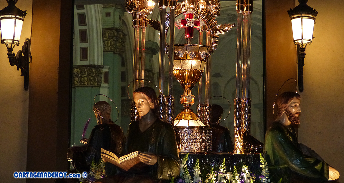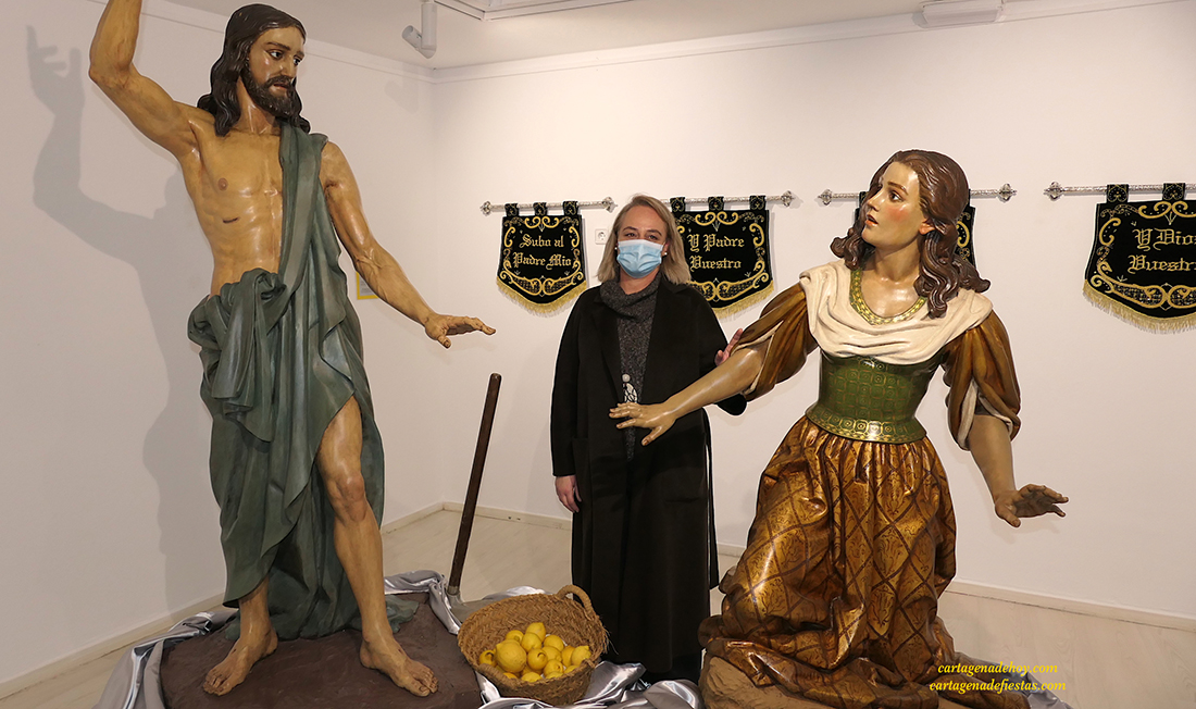 La restauradora ha acometido, durante tres meses, el trabajo de restauración del grupo escultórico que sale en procesión el Domingo de Resurrección. "Ha sido un profundo trabajo para recuperar la policromía original y quitar los hongos que surgieron de cuando se mojaron", explica la cartagenera. Las imágenes se pueden ver de cerca en la exposición 'Rabboni'.