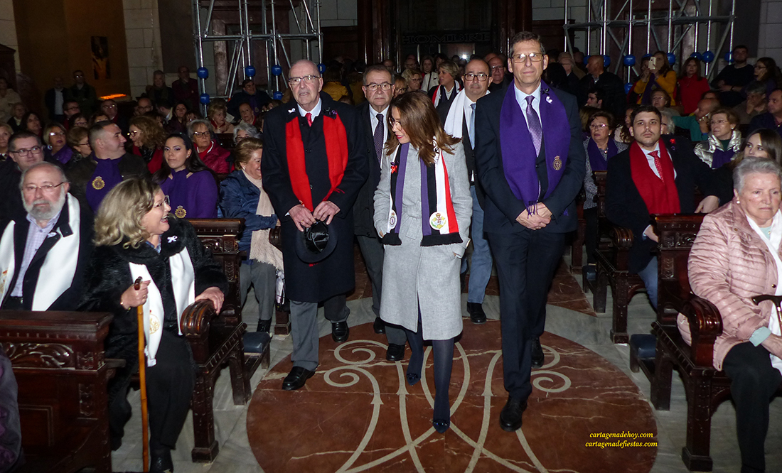 La iglesia de Santa María de Gracia, con presencia de las imágenes del Cristo del Prendimiento y del Cristo de la Misericordia en los laterales del altar, se celebro el voto de entronización e imposición de cordones a unos cuarenta nuevos consiliarios y mayordomos de la hermandad, en un acto incluido en el programa de actos del aniversario de la cofradía.