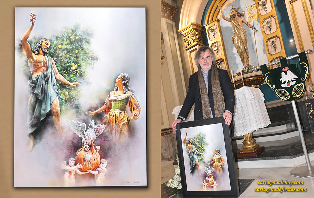 Ese término define a un recurso pictórico habitual en el arte cristiano, que consiste en representar un plano espiritual sobre plano terrenal mediante una ficción de perspectiva en la que las figuras aparecen de la gloria, siendo separadas por nubes. Un ejemplo de este efecto lo podemos ver en el cuadro conmemorativo que el pintor palmesano ha creado para el 75 aniversario de la agrupación de la Aparición de Jesús a María Magdalena.