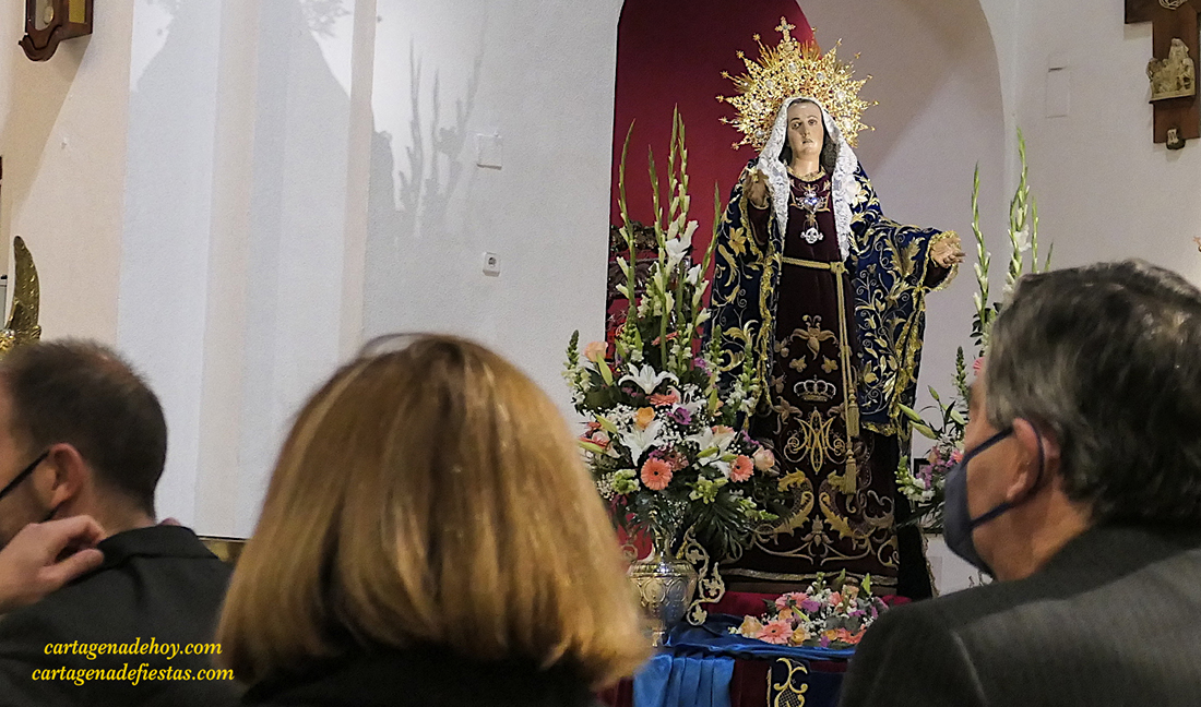 La agrupación de la Santísima Virgen de la Soledad de la Cofradía de Nuestro Padre Jesús Nazareno (Marrajos) celebró en la iglesia de Santo Domingo la tradicional eucaristía dedicada a la Virgen Dolorosa, imagen que sale en procesión en la madrugada del Encuentro.