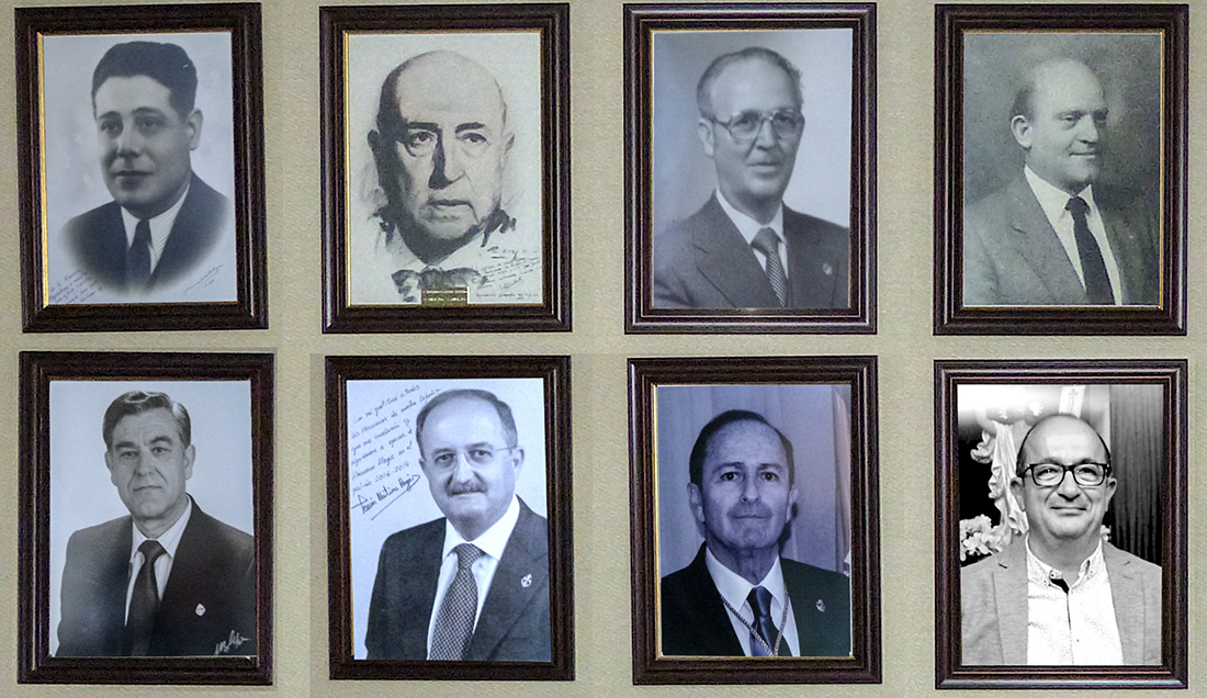Fulgencio Egea, Marién García Boj y Salvador Sixto Monteaguado son los tres aspirantes al máximo cargo de la hermandad, en un proceso que afronta hoy su penúltimo capítulo con las votaciones que tendrán lugar en el almacén de tronos de la calle Mahón para facilitar el cumplimiento de la medidas anticovid. En la imagen adjunta se observa a los ocho antecesores en el puesto de una cofradía que se constituyó en el año 1943.