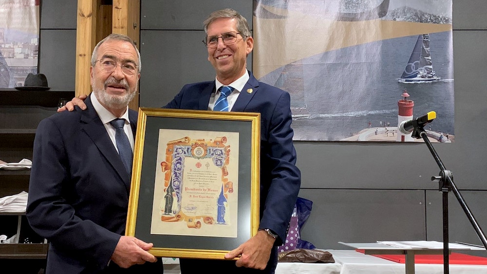 La agrupación del Santo Sepulcro y Expolio de Cristo de la Cofradía Marraja ha entregado el nombramiento a quien ha sido su presidente durante diecisiete años, y a quien se observa junto al hermano mayor de la hermandad de Jesús Nazareno, Francisco Pagán Martín-Portugués.