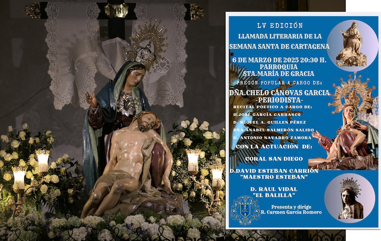 La locutora radiofónica ofrecerá su alocución el 6 de marzo en la iglesia de Santa María en una 55 edición que estará dedicada a la Virgen de la Piedad en el centenario de la llegada a Cartagena de la imagen que talló José Capuz. El acto reunirá a cuatro poetas y en su apartado musical contará con la coral de Sasn Diego, con David Esteban Carrión 'Maestro Esteban' y el artista flamenco 'El Balilla'. Carmen García Romero será la presentadora de la velada en Santa María, con entrada gratuita.