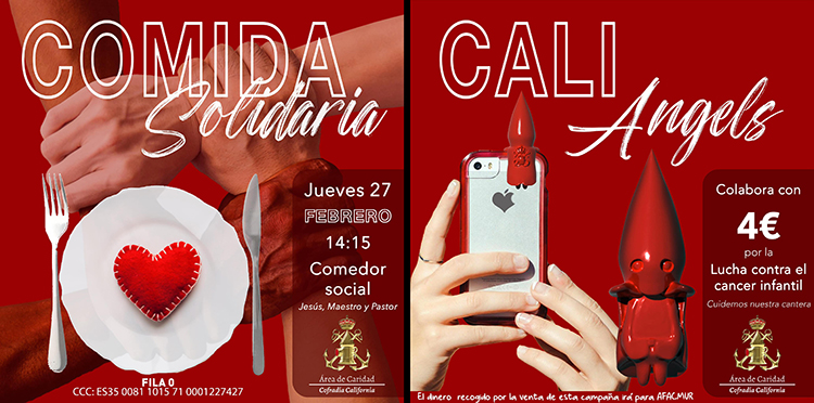 La tradicional comida en el comedor social 'Jesús, maestro y pastor', cuya recaudación ayuda a personas desfavorecidas de la sociedad, tendrá lugar este jueves, mientras que el área de caridad de la Cofradía California informa que activa su nueva campaña en apoyo contra el cáncer infantil.