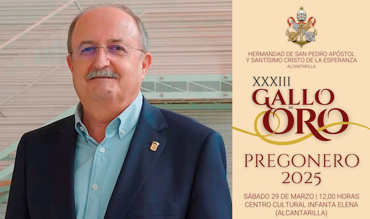 La Hermandad de San Pedro Apóstol y Santísimo Cristo de la Esperanza del municipio de la Región de Murcia anuncia el nombramiento del cartagenero para el 'XXXIII Acto del Gallo de Oro' que se celebrará el sábado 29 de marzo, a las doce horas, en el centro cultural 'Infanta Elena' de la localidad alcantarillera.