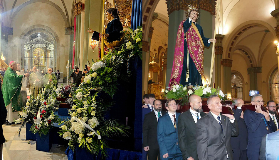 La frase fue vertida por Pedro Emilio Conesa, presidente de la agrupación de San Juan Evangelista de la Cofradía del Resucitado, durante el acto de presentación de la nueva talla del Discípulo Amado, la cual fue bendecida por el obispo en la iglesia de Santa María. “No solo es una obra de arte, sino un instrumento de oración y de encuentro con el Resucitado”, expuso su hermana mayor, Marién García Boj.