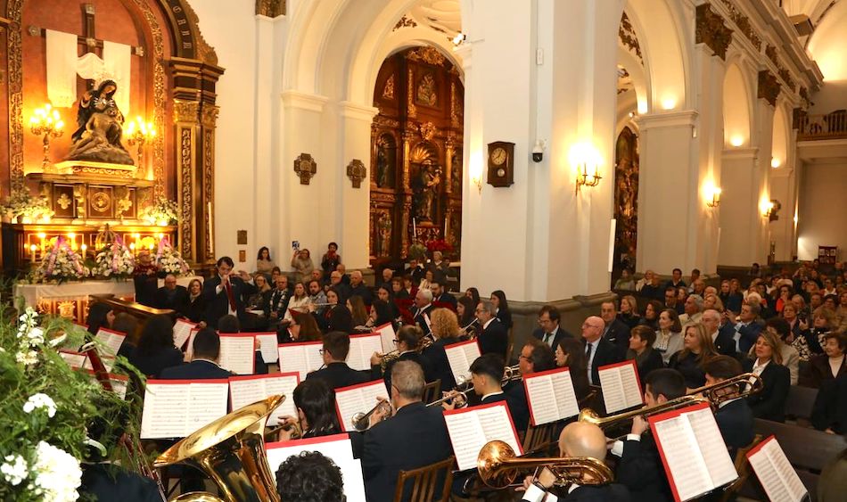 La iglesia de Santa Teresa y Santa Isabel de la capital de España acogidó un concierto de marchas procesionistas a cargo de Sauces y la presentación del cartel de la Semana Santa de este año. Asistieron la alcaldesa y los cuatro hermanos mayores.
