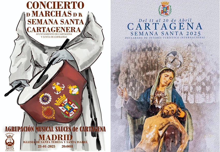 La iglesia de Santa Teresa y de Santa Isabel acoge esta noche un concierto de marchas de la Semana Santa de Cartagena organizado por el ayuntamiento y por la Junta de Cofradías, en el que la Agrupación Musical Sauces será la que interprete las piezas. Durante el acto también se presentará en la capital de España el cartel de este año, que tiene como protagonista a la Virgen de la Piedad en el 125 aniversario de la llegada de la talla que esculpió José Capuz.