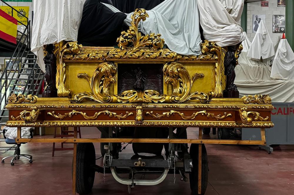 La peana que lleva a Jesús en el momento de la pasión en el que recibe la corona de espinas, la cual es obra de Rafael Eleuterio Aguilar y sale en procesión desde hace 61 años, comenzará a ser objeto de una profunda restauración este próximo lunes con una empresa especializada de Sevilla. Los vecinos que quieran pueden ayudar a la agrupación california aportando un euro.