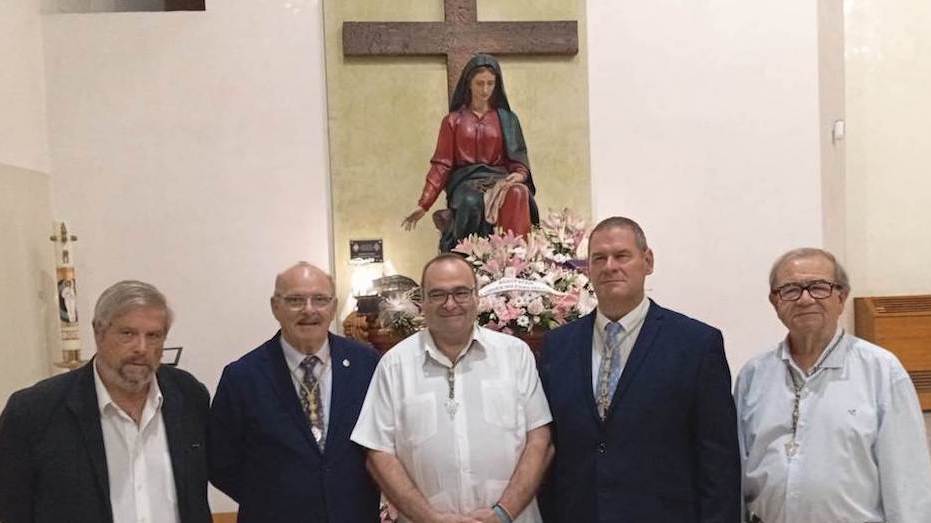 La eucaristía anual, tercer y último acto de los que se llevan a cabo en el año, se ha desarrollado en la iglesia de San Fulgencio. En su homilía, el reverendo Lázaro Gomariz explicó el significado de las dos palabras de esta advocación: soledad y consuelo. Se pidió por una pronta recuperación del párroco, Miguel Solana, quien se encuentra enfermo. En la foto, ante la imagen posan José Damián Catalá, Javier Pavía, Enrique Blaya, José Antonio García Armero y Manuel Martínez Guillen