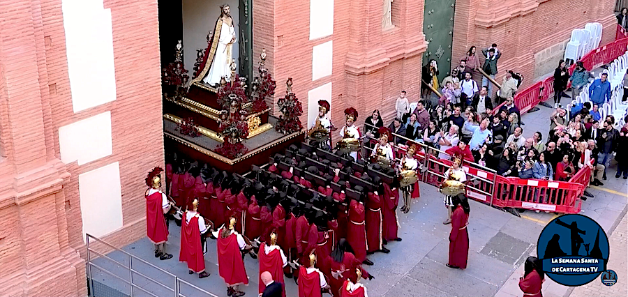 El portal 'La Semana Santa de Cartagena TV' ofrece en directo por internet los desfiles del Jueves Santo californio y de la madrugada del 'Encuentro' marrajo, que también será ofrecido a nivel regional por la televisión autonómica 7RM con señal que le manda la empresa cartagenera Creavisual. Aquí te facilitamos los enlaces para seguir los cortejos por tu terminal. En la foto, el 'Acto de desagravio del Ecce Homo' que a las 20.15 horas ha iniciado la primera transmisión.