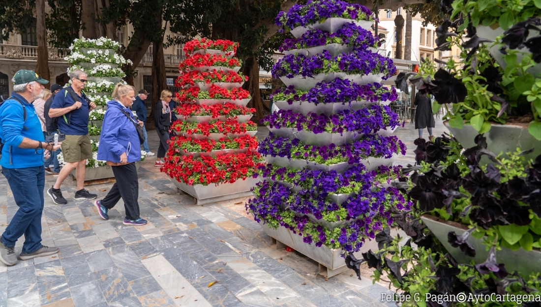 El Ayuntamiento de Cartagena ha plantado 18.800 petunias de colores negro en honor a la Cofradía del Cristo del Socorro, rojas por los californios, moradas por los marrajos y blancas por el Resucitado con motivo de la celebración de las procesiones. El servicio municipal de Parques y Jardines también ha repasado los itinerarios de las procesiones para que el arbolado no complique el paso de los tronos.