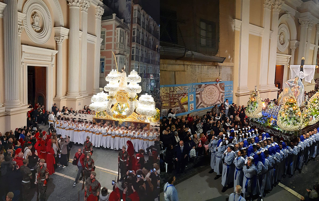 Juan Manuel Ayaso ofrece a los lectores de Cartagena de Hoy escenas del paso ante la Real Basílica Menor de la Virgen de la Caridad de los tronos de La Piedad y de San Juan, respectivamente, el Lunes y el Martes Santo.