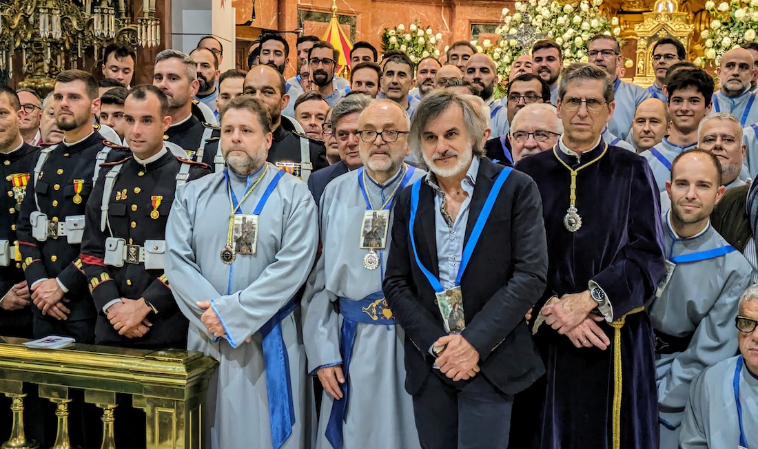 El pintor palmesano recibió la máxima distinción de la agrupación marraja en la tradicional homilía previa a la procesión, en la que el capellán, Fernando Gutiérrez Reche, recordó la necesidad de "meter el hombro todo el año".