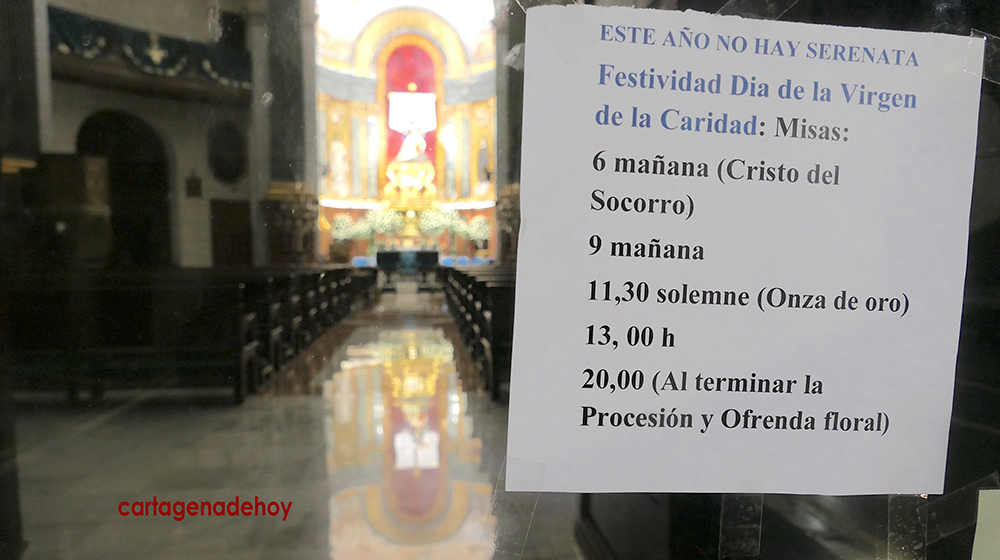 La patrona no ha tenido esta vez, en la medianoche que abre su gran día, el tributo en forma de canciones que se implantó en 2007. Aunque se había anunciado en los carteles de su novena para este año, los cartageneros que acudieron anoche a su basílica se encontraron con un papel en el cristal de la puerta indicando que este 2024 no se iba a llevar a cabo su celebración.