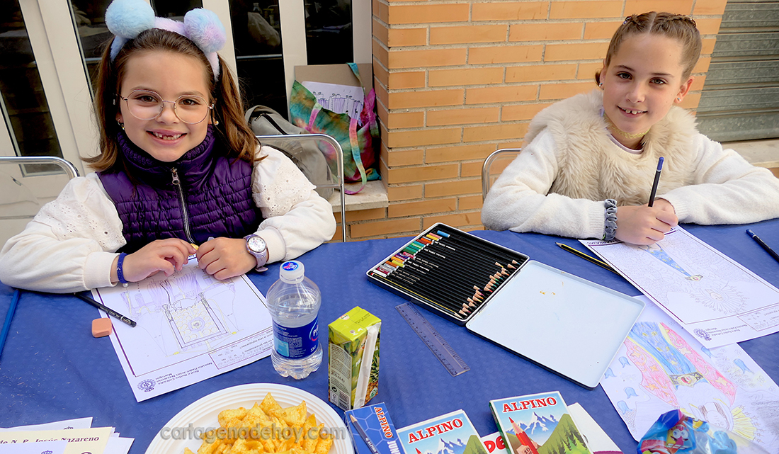 El concurso de la Cofradía de Nuestro Padre Jesús Nazareno alcanzó su vigesimo primera edición con una agradable mañana en el Callejón de Bretau de Cartagena en el que los jóvenes procesionistas ofrecieron variados dibujos con diferentes visiones de las procesiones marrajas.