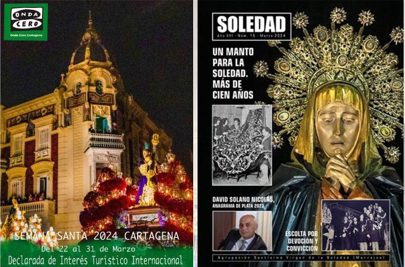 La emisora Onda cero dará a conocer su guía de las procesiones a partir de las 19 horas en el salón de actos del Teatro Romano de Cartagena, mientras que Fernando Gutiérrez Reche, capellán marrajo y pregonero de la Semana Santa de Cartagena’24 será el presentador de la revista ‘Soledad’ de la agrupación de la Virgen marraja a las 20.30 horas en la sede de la Cofradía del Nazareno de la calle Jara. La entrada es gratuita en ambos casos.