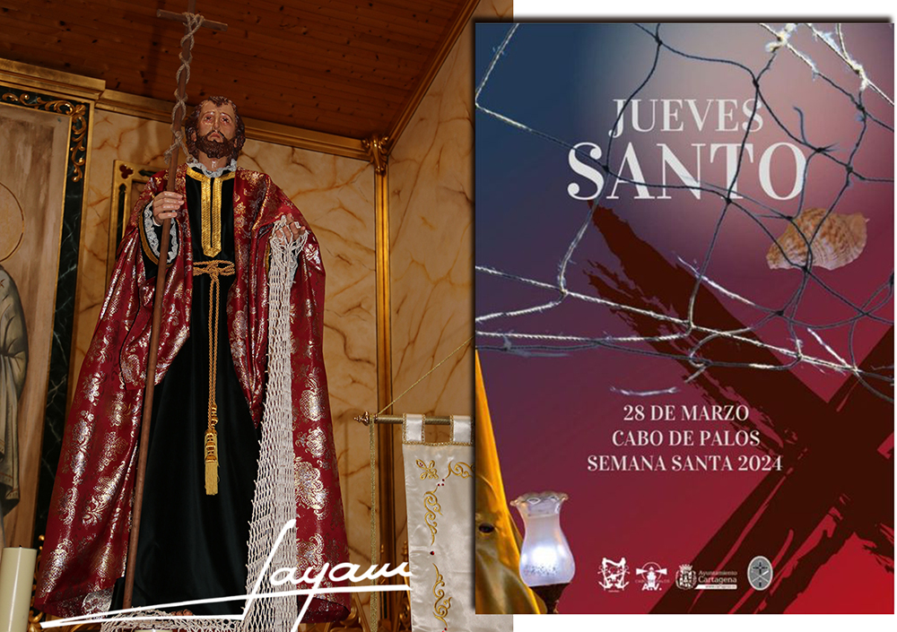 La nueva agrupación de Santiago Apóstol de la Cofradía del Santísimo Cristo de los Pescadores, que se estrenará este año en la procesión del Jueves Santo, hace un llamamiento para completar el grupo de costaleras para esa primera salida, siendo requisito haber cumplido los 18 años de edad. En las fotos, la talla creada por el imaginero Juan José Quirós y el cartel de este año de esta pasión mediterránea.